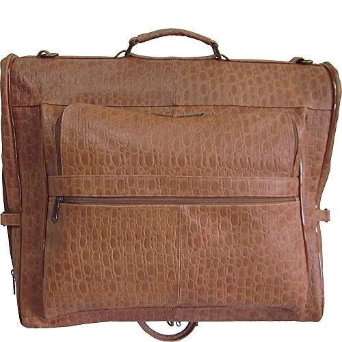 Details: Carry up to three suits for a business trip or a formal affair out of town inside this rich leather garment bag from AmeriLeather. The AmeriLeather Leather Three-suit Garment Bag is crafted from top grain cowhide leather and features a fold over design with a zip around panel and heavy duty hardware for long lasting durability. This garment bag includes two garment hangers and a hook for use over a door or on a closet rod as well as outside zipper pockets that offer added storage for socks, belts, shirts, ties, and other essential items. A top carry handle and an adjustable, detachable shoulder strap offer versatile carrying options to suit your travel style.