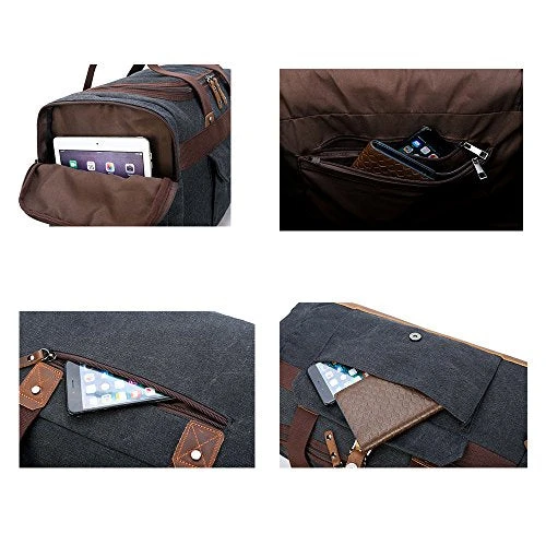 - A vintage overnight bag made of high quality soft canvas, with decoration trim of top quality genuine leather makes the bag more fashion and high-end