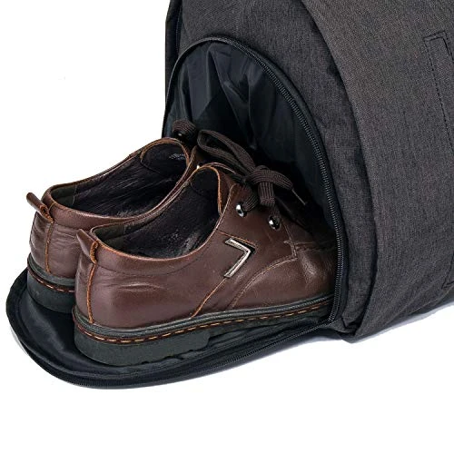 - this garment duffel bag work perfect as a 55L duffel bag/travel weekender bag. At the left side pocket of this garment bag is a shoes pouch.
