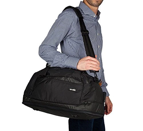 Details: his sleek two-tone matte black duffle has a bottom cavity which unzips to a tri-fold garment suiter to pack hanging clothes. This bag has been thoughtfully designed with an array of organizational compartments to provide the most convenient way to transport suits or dress shirts. Integrate the Portable Mobile Charger to recharge your smartphone directly from your bag. Exterior access of the Micro Travel Umbrella so if it starts raining just pop that out. Laundry Compression Technology means your clothes compress to the take up the least amount of space. It’s extremely lightweight too, only 2.2 lbs!