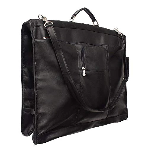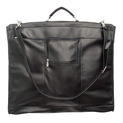 Details: ThisPiel Colombian Leather Elite Garment Bag is perfect for traveling in style while keeping your clothes from wrinkling. The full grain leather is available in black or brown color variations with plenty of space for your clothes and accessories. The main zippered compartment includes a wally clamp capable of hanging 3-4 suits, an elastic strap to secure clothing, and an interior zip pocket.Details: Carry-on sizeFull grain leatherSolid patternMulti-compartmentDetachable shoulder strapWally clamp holds 3-4 suitsBlack and saddle (brown) colors available23 inches wide x 19 inches high x 5 inches deep