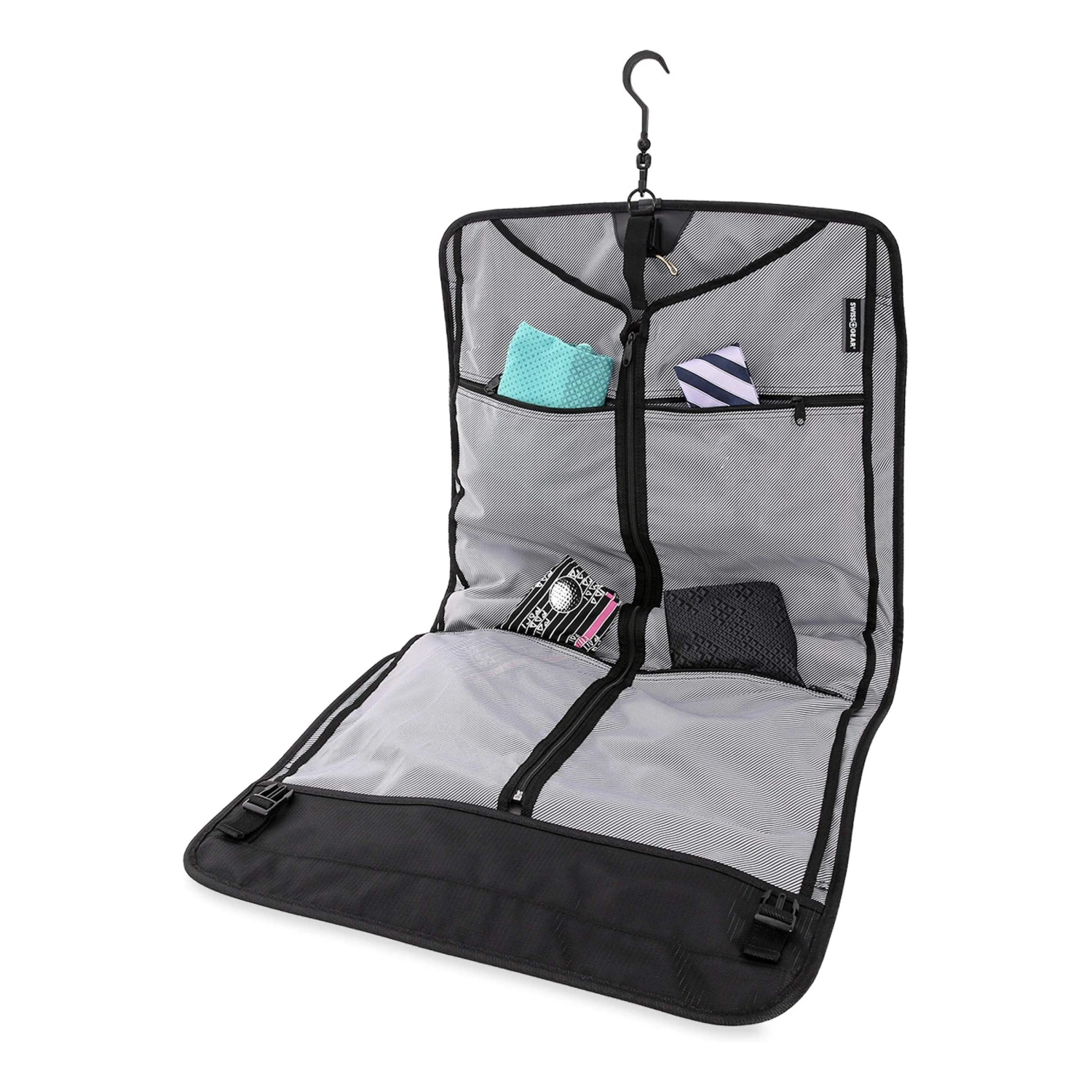 Details: Take this Swissgear 6067 Getaway 2.0 Carry On Garment Bag to your frequent business ventures and keep your dapper suits or dress shirts wrinkle-free and ready to wear. It’s smartly designed with plenty of interior and exterior accessory pockets. Its fully lined garment interior measures 40.5 x 22.5 x 3.5″ when opened flat, which also stores a hanger to neatly organize your things inside your business-suite closet. Comfortably carry its padded, adjustable shoulder strap and keep up with the hustle of fast-paced travel.