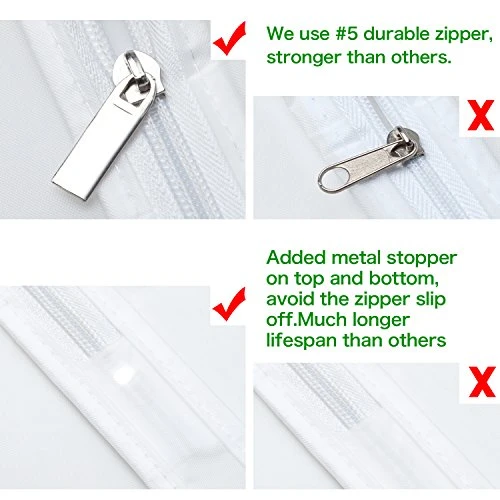- ăSTRONGER ZIPPERă We use qualified 5# nylon zipper and added the upper and bottom metal stoppers to avoid zipper slip off, which ensure the durable, smooth and long time use of the zipper.